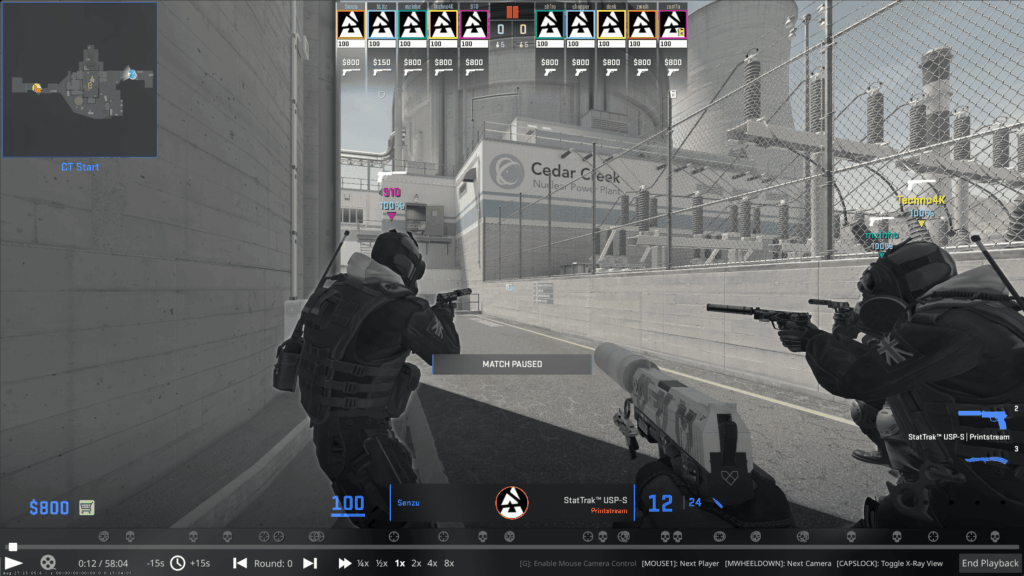Po ponownym wciśnięciu tej kombinacji wysunie nam się całe DemoUI, dzięki któremu mamy dostęp do pełnego interfejsu powtórki w CS2, gdzie za pomocą prostych kliknięć możemy łatwo ją przeglądać.