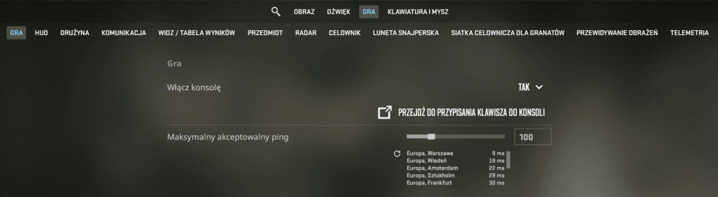 CS2 pozwala ustawić maksymalny akceptowalny ping, który decyduje o tym, jakie serwery będą brane pod uwagę podczas wyszukiwania meczu. Jeśli ta wartość jest zbyt wysoka, możesz trafić na serwery oddalone geograficznie, co skaże gracza na wyższy ping.