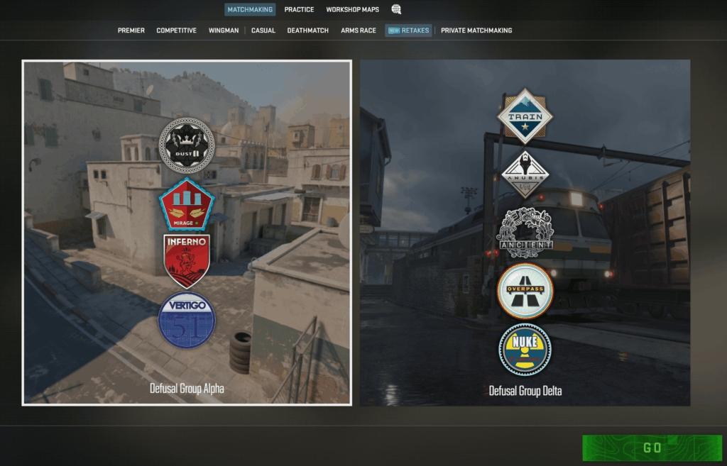 Mapy dostępne w trybie Retake są podzielone na dwie grupy: